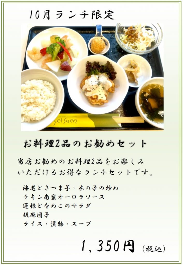 棒々鶏/ 料理2品(海老のチリソース/酢豚/麻婆豆腐/ホイコーロー/牛肉のカキソース炒め/ユーリンチー)お好きな料理2品お選び下さい。