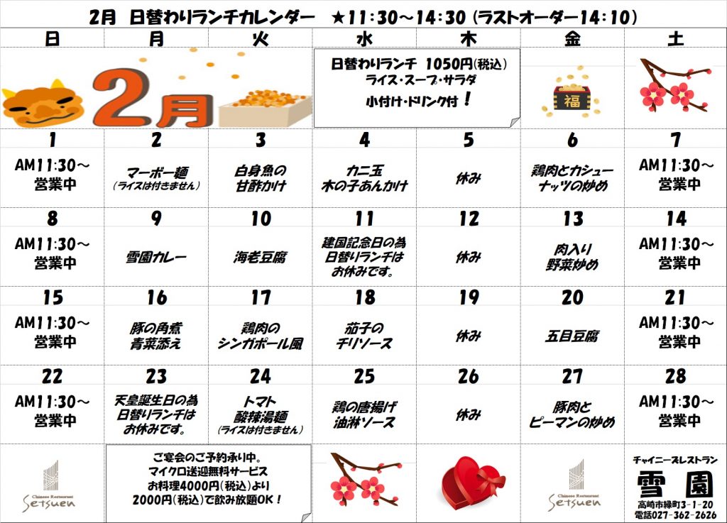 土日祝日は月間ランチをお楽しみ下さい。